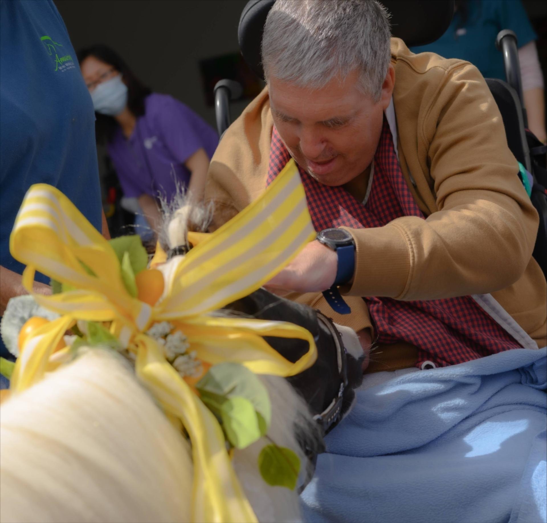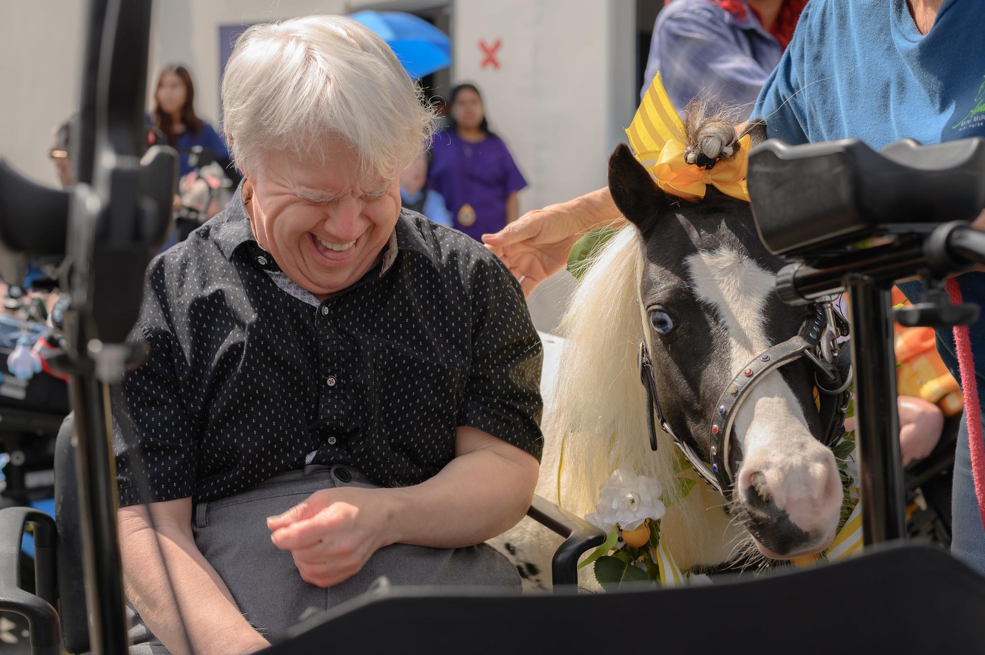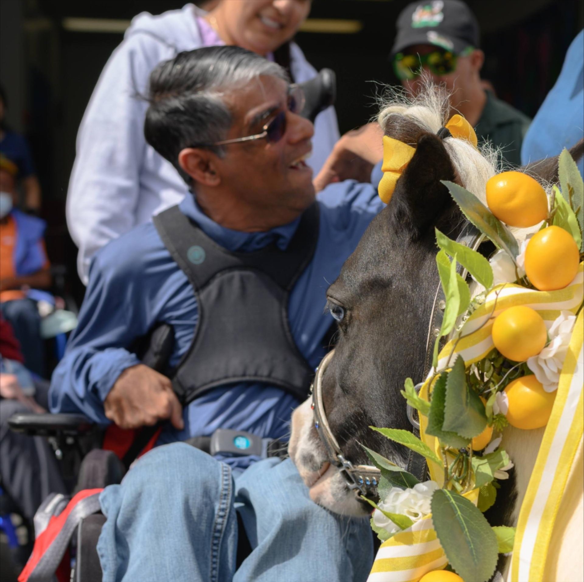 A big WOW from MSOS participant, and MSCH – San Diego resident, Deepak, as he is CHARMed by the magic of a mini horse. |