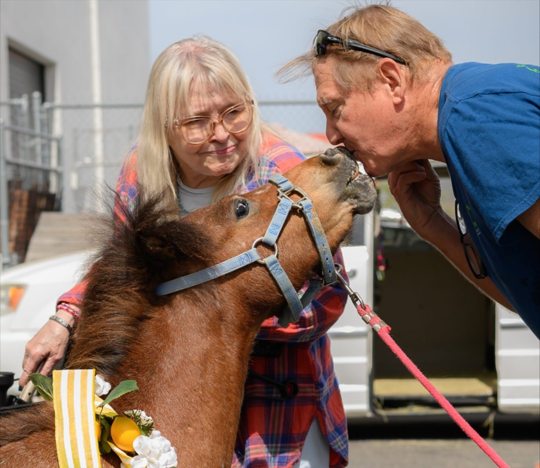 A life-changing birthday gift of two, six-month-old miniature horses, spurred Donna Carlomagno into a purpose-ridden new nonprofit adventure, Amazing Mini Miracles, in 2019. Physical challenges had forced an early retirement from her long-term position as a stenographer for the San Diego Superior Court – and as soon as she saw the two mini horses, she, and her husband, were filled with such a sense of joy and happiness, they knew they had to share them with others.