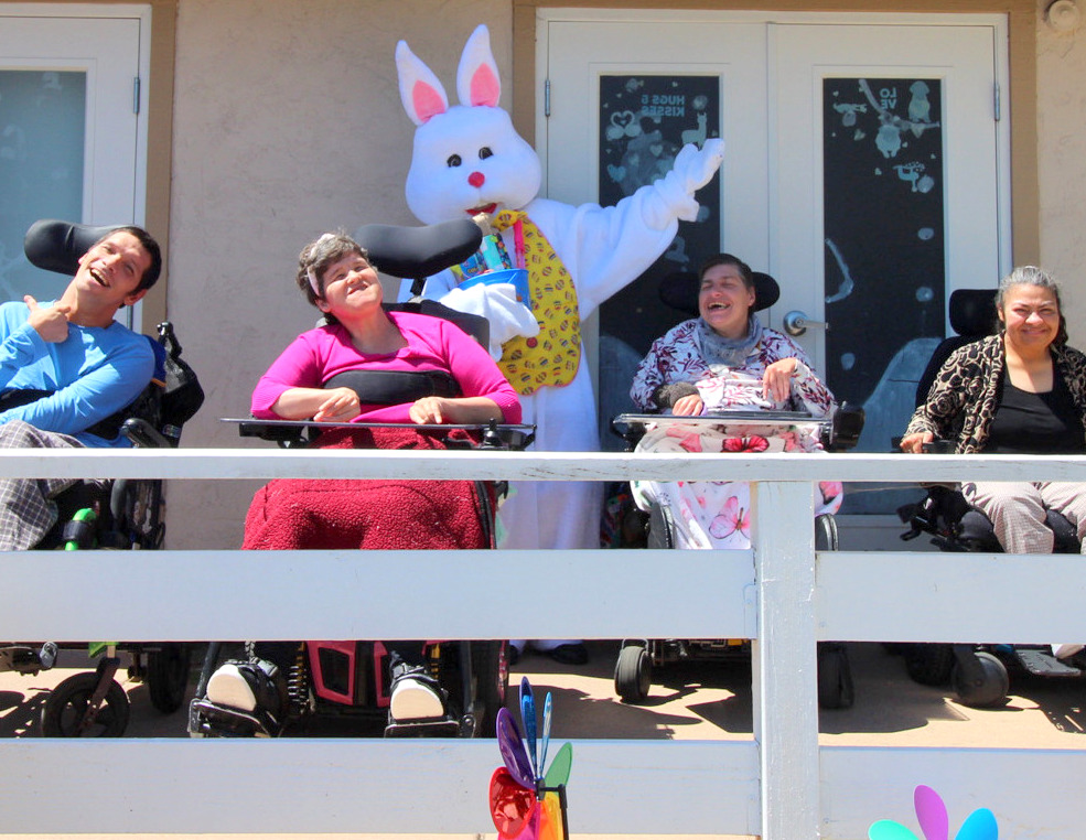 MSCH-San Diego residents, Josh, Heidi, Kristen and Lupita, celebrate with Spring Bunny. |