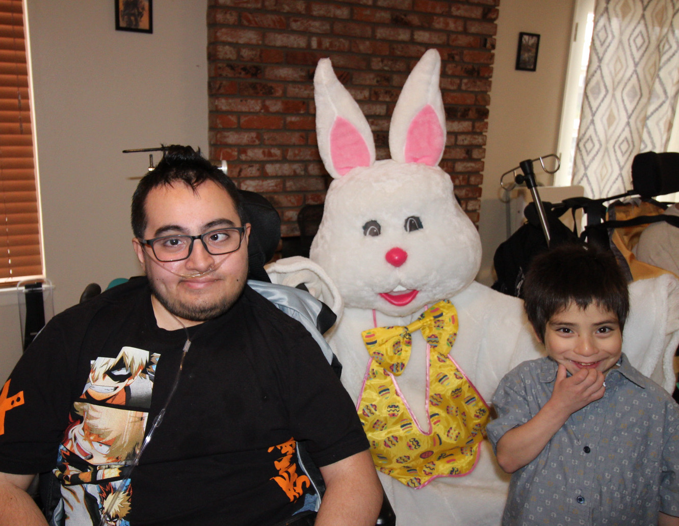 Riverside residents, Miguel and Justin, share good times with the Spring Bunny. |