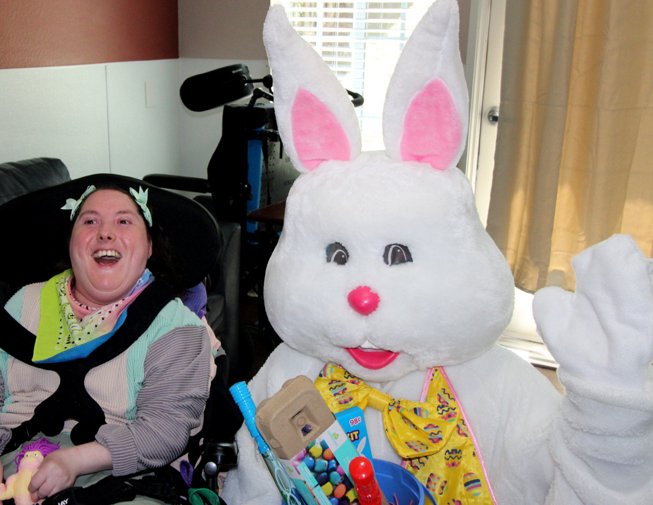 MSCH-San Diego resident, Stephanie, with Spring Bunny. |