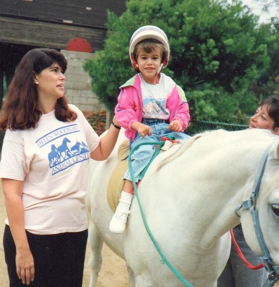 Rachel riding ‘Sunny” the white horse at Helen Woodward Animal Center. |