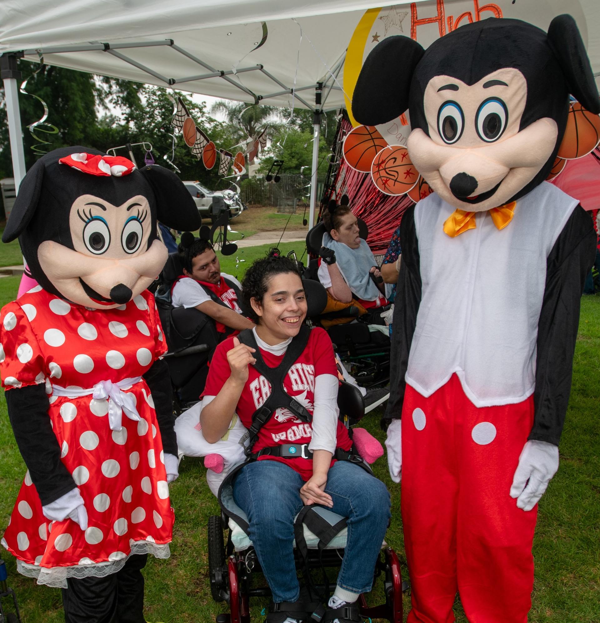 Mickey and Minnie Mouse pose with MSCH-Riverside resident, Danielle. |