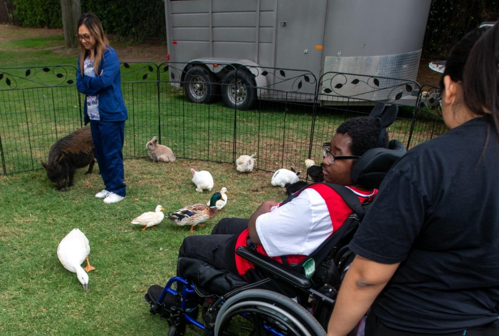 “We also had a petting zoo, which was really fun,” says Olivia. “Some of our residents really enjoyed that. They got to touch and hold the animals. They had some really cute animals – ducks, rabbits, even a pig!” |