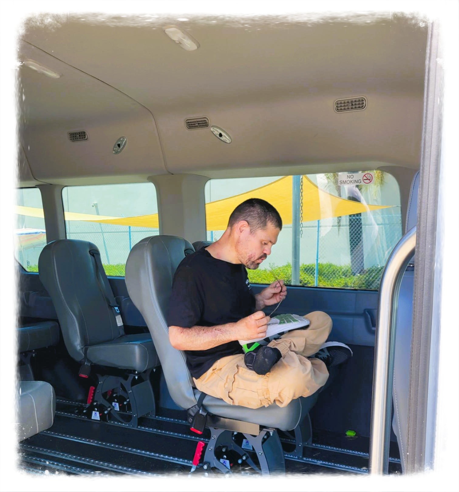 Darren ready for an outing on the Mountain Shadows transportation bus |