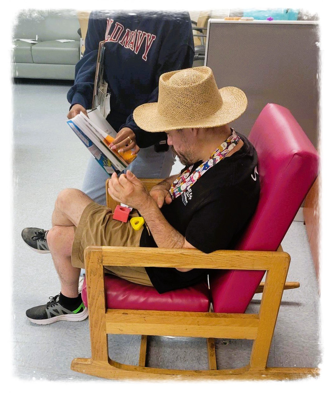 “Darren loves going on our community outings. He loves going on walks and will do laps around the park. He also loves sticks. He collects sticks and twirls them around in his hands. Repetitive actions are common in autistic individuals. So, Darren walks around the lake, and around the building, twirling the sticks in his hands. It’s a fun and healthy activity for him.”
